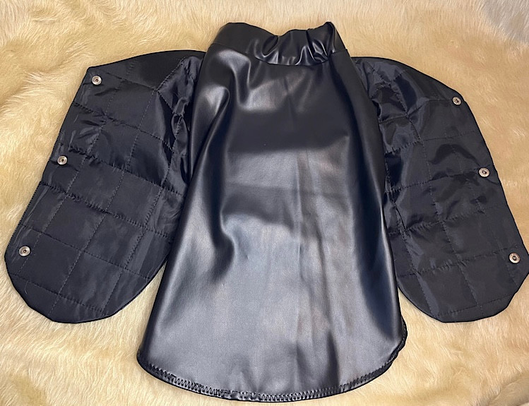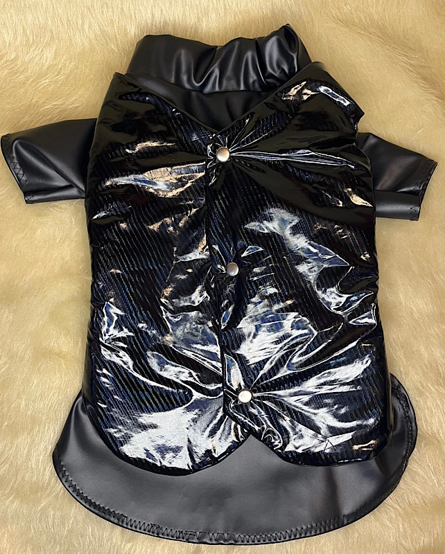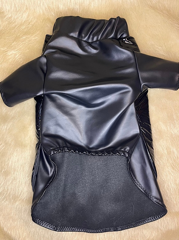 کاپشن چرم با جلیقه ورنی ، جلیقه به لباس چسبیده پارچه کار چرم درجه یک بدون ترک خورن و پوست پوست شدن در سایز بندی کامل تعداد محدود موجوده برای سگ و گربه تن خورش خیلی عالیه