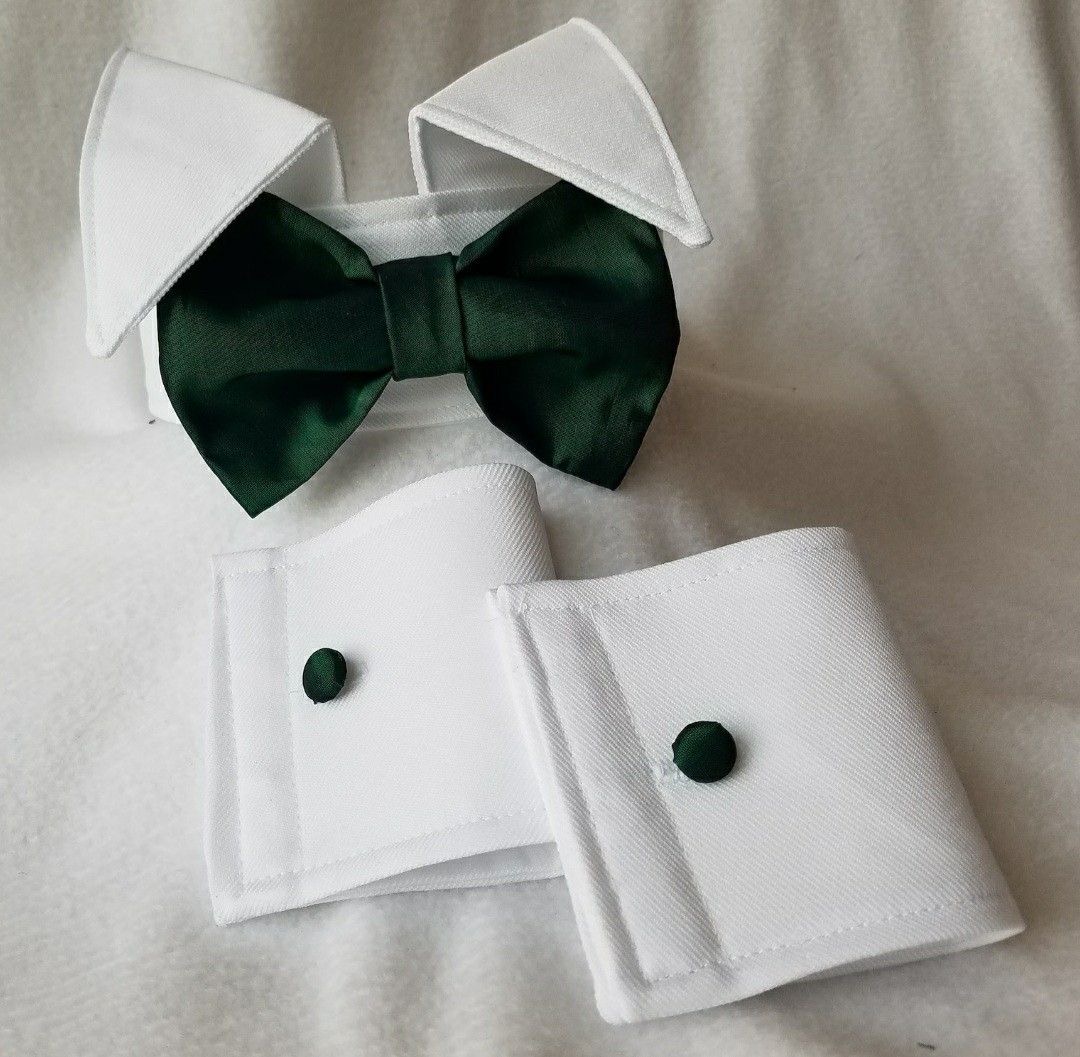 اگر میخواهید پت دلبندتان در مهمانیها و عکاسیها بدرخشد، این ست یقه و آستین تزئینی انتخابی شیک و متفاوت است. طراحی کلاسیک با پاپیون سبز تیره روی یقه سفید، ظاهری رسمی و جذاب به سگ یا گربه شما میدهد.