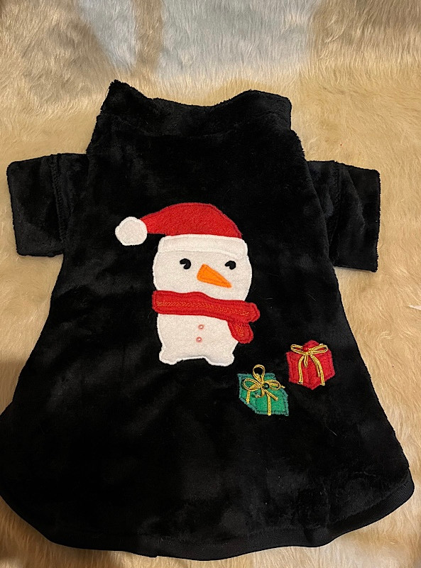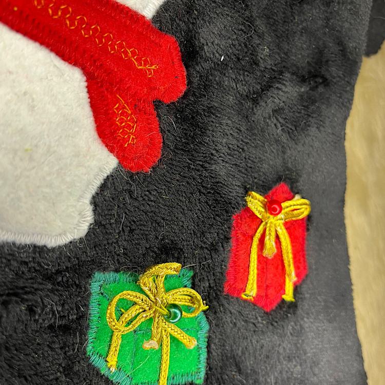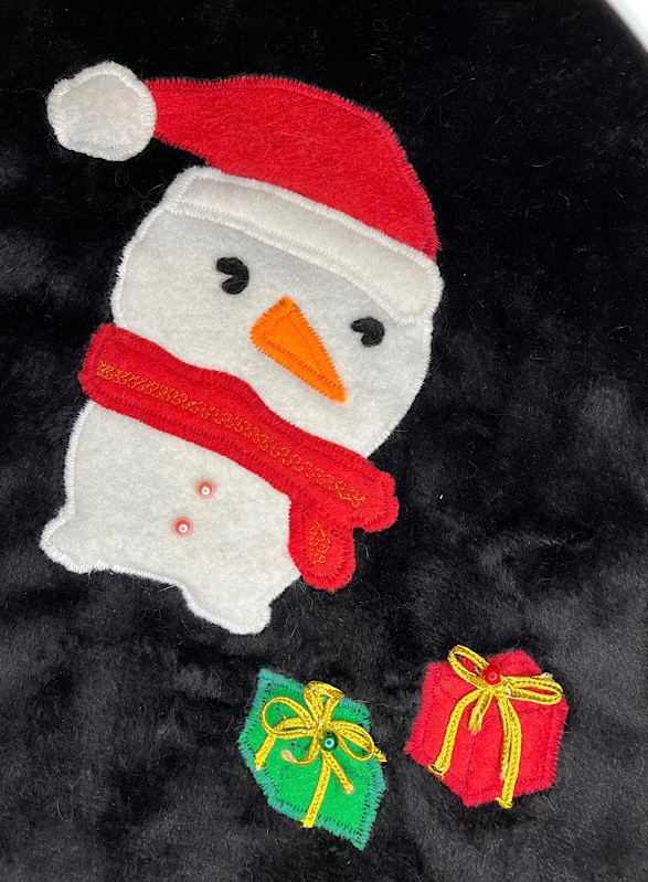 آدم برفی روی کار کاملا تکه دوزی شده و گیفت های روی لباس برجسته میباشد